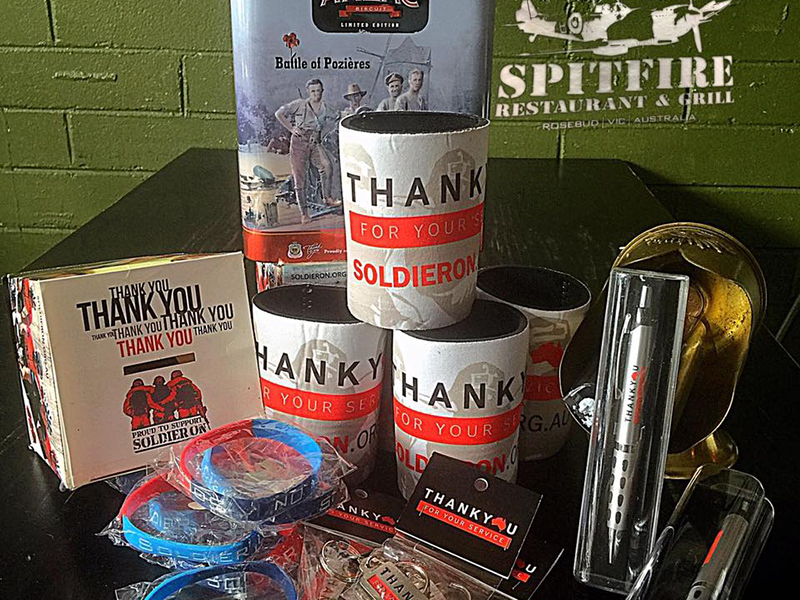We also have a range of war memorial items available to purchase, along with our Spitfire Restaurant merchandise so you can remember us! Our range includes stubby holders, t- shirts, hats, war memorial items, soldier on items as well as our special chili sauces along with the ability to purchase gift vouchers and hire bikes.